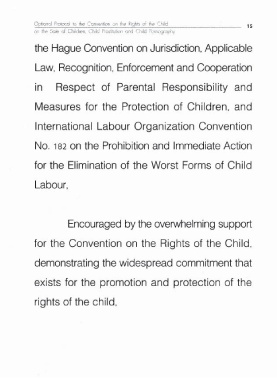 Page 19 - พิธีสารเลือกรับของอนุสัญญาว่าด้วยสิทธิเด็กเรื่องการค้าเด็ก การค้าประเวณี และสื่อลามกที่เกี่ยวกับเด็ก ; พิธีสารเลือกรับของอนุสัญญาว่าด้วยสิทธิเด็กเรื่อง ความเกี่ยวพันของเด็กในความขัดแย้งกันด้วยอาวุธ
