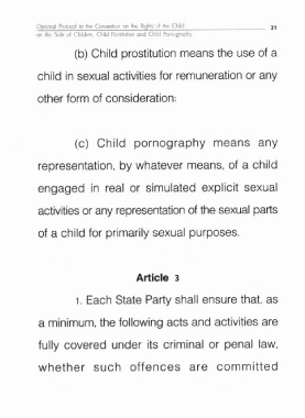 Page 25 - พิธีสารเลือกรับของอนุสัญญาว่าด้วยสิทธิเด็กเรื่องการค้าเด็ก การค้าประเวณี และสื่อลามกที่เกี่ยวกับเด็ก ; พิธีสารเลือกรับของอนุสัญญาว่าด้วยสิทธิเด็กเรื่อง ความเกี่ยวพันของเด็กในความขัดแย้งกันด้วยอาวุธ