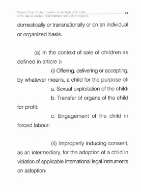 Page 27 - พิธีสารเลือกรับของอนุสัญญาว่าด้วยสิทธิเด็กเรื่องการค้าเด็ก การค้าประเวณี และสื่อลามกที่เกี่ยวกับเด็ก ; พิธีสารเลือกรับของอนุสัญญาว่าด้วยสิทธิเด็กเรื่อง ความเกี่ยวพันของเด็กในความขัดแย้งกันด้วยอาวุธ