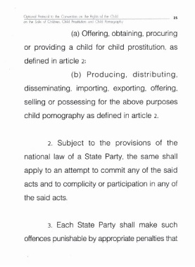 Page 29 - พิธีสารเลือกรับของอนุสัญญาว่าด้วยสิทธิเด็กเรื่องการค้าเด็ก การค้าประเวณี และสื่อลามกที่เกี่ยวกับเด็ก ; พิธีสารเลือกรับของอนุสัญญาว่าด้วยสิทธิเด็กเรื่อง ความเกี่ยวพันของเด็กในความขัดแย้งกันด้วยอาวุธ
