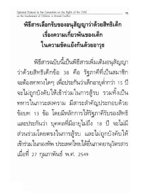 Page 79 - พิธีสารเลือกรับของอนุสัญญาว่าด้วยสิทธิเด็กเรื่องการค้าเด็ก การค้าประเวณี และสื่อลามกที่เกี่ยวกับเด็ก ; พิธีสารเลือกรับของอนุสัญญาว่าด้วยสิทธิเด็กเรื่อง ความเกี่ยวพันของเด็กในความขัดแย้งกันด้วยอาวุธ