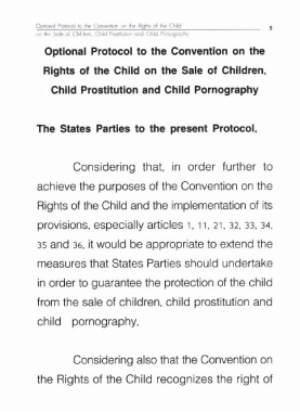 Page 9 - พิธีสารเลือกรับของอนุสัญญาว่าด้วยสิทธิเด็กเรื่องการค้าเด็ก การค้าประเวณี และสื่อลามกที่เกี่ยวกับเด็ก ; พิธีสารเลือกรับของอนุสัญญาว่าด้วยสิทธิเด็กเรื่อง ความเกี่ยวพันของเด็กในความขัดแย้งกันด้วยอาวุธ