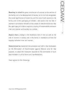 Bearing in mind the great contribution of women to the welfare of CEDAW