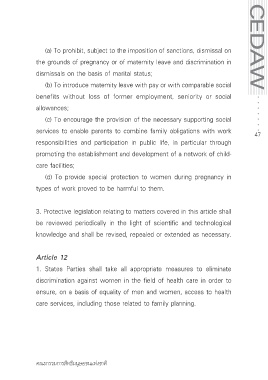 (b) To introduce maternity leave with pay or with comparable social