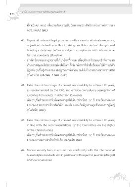 - เพิ่มอายุขั้นตำ่าของการรับผิดทางอาญาให้เป็นอย่างน้อย 12 ปี ตามข้อเสนอแนะ