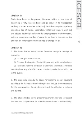 Page 44 - หลักกฎหมายระหว่างประเทศทั่วไปเกี่ยวกับสนธิสัญญาด้านสิทธิมนุษยชนและสาระสำคัญของกติการะหว่างประเทศว่าด้วยสิทธิทางเศรษฐกิจ สังคม และวัฒนธรรม