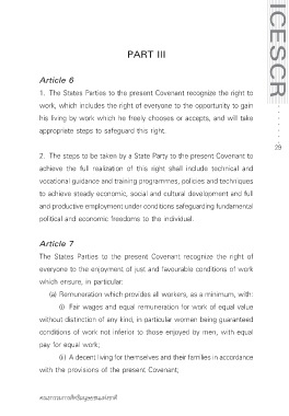 Page 29 - หลักกฎหลักกฎหมายระหว่างประเทศทั่วไปเกี่ยวกับสนธิสัญญาด้านสิทธิมนุษยชน, กติการะหว่างประเทศว่าด้วยสิทธิทางเศรษฐกิจ สังคม และวัฒนธรรม