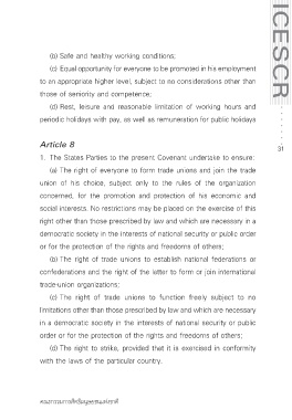 Page 31 - หลักกฎหลักกฎหมายระหว่างประเทศทั่วไปเกี่ยวกับสนธิสัญญาด้านสิทธิมนุษยชน, กติการะหว่างประเทศว่าด้วยสิทธิทางเศรษฐกิจ สังคม และวัฒนธรรม