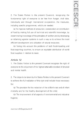 Page 37 - หลักกฎหลักกฎหมายระหว่างประเทศทั่วไปเกี่ยวกับสนธิสัญญาด้านสิทธิมนุษยชน, กติการะหว่างประเทศว่าด้วยสิทธิทางเศรษฐกิจ สังคม และวัฒนธรรม