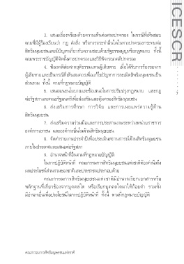 Page 7 - หลักกฎหลักกฎหมายระหว่างประเทศทั่วไปเกี่ยวกับสนธิสัญญาด้านสิทธิมนุษยชน, กติการะหว่างประเทศว่าด้วยสิทธิทางเศรษฐกิจ สังคม และวัฒนธรรม