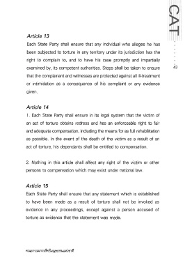Page 44 - หลักกฎหมายระหว่างประเทศทั่วไปเกี่ยวกับสิทธิมนุษยชน, อนุสัญญาต่อต้านการทรมานและการประติบัติหรือการลงโทษอื่นที่โหดร้ายไร้มนุษยธรรม หรือที่ย่ำยีศักดิ์ศรี