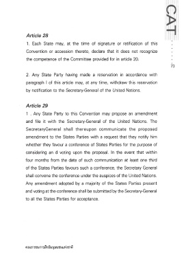 Page 74 - หลักกฎหมายระหว่างประเทศทั่วไปเกี่ยวกับสิทธิมนุษยชน, อนุสัญญาต่อต้านการทรมานและการประติบัติหรือการลงโทษอื่นที่โหดร้ายไร้มนุษยธรรม หรือที่ย่ำยีศักดิ์ศรี