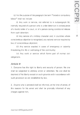 Page 36 - หลักกฎหมายระหว่างประเทศทั่วไปเกี่ยวกับสนธิสัญญาด้านสิทธิมนุษยชน, กติการะหว่างประเทศว่าด้วยสิทธิพลเมืองและสิทธิทางการเมือง