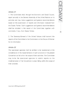 Page 66 - หลักกฎหมายระหว่างประเทศทั่วไปเกี่ยวกับสนธิสัญญาด้านสิทธิมนุษยชน ; อนุุสัญญาว่าด้วยการขจัดการเลือกประติบัติต่อสตรีในทุกรูปแบบ ; พิธีสารรับเลือกของอนุสัญญาว่าด้วยการขจัดการเลือกประติบัติต่อสตรีในทุกรูปแบบ