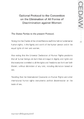 Page 78 - หลักกฎหมายระหว่างประเทศทั่วไปเกี่ยวกับสนธิสัญญาด้านสิทธิมนุษยชน ; อนุุสัญญาว่าด้วยการขจัดการเลือกประติบัติต่อสตรีในทุกรูปแบบ ; พิธีสารรับเลือกของอนุสัญญาว่าด้วยการขจัดการเลือกประติบัติต่อสตรีในทุกรูปแบบ