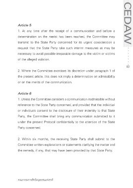 Page 84 - หลักกฎหมายระหว่างประเทศทั่วไปเกี่ยวกับสนธิสัญญาด้านสิทธิมนุษยชน ; อนุุสัญญาว่าด้วยการขจัดการเลือกประติบัติต่อสตรีในทุกรูปแบบ ; พิธีสารรับเลือกของอนุสัญญาว่าด้วยการขจัดการเลือกประติบัติต่อสตรีในทุกรูปแบบ