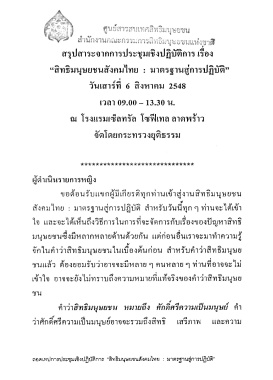 Page 2 - สาระจากการสัมมนา "สิทธิมนุษยชนสังคมไทย : มาตรฐานสู่การปฏิบัติ" วันที่ 6 สิงหาคม 2548 ณ โรงแรมโซฟิเทลเซ็นทรัลพลาซ่า กรุงเทพฯ