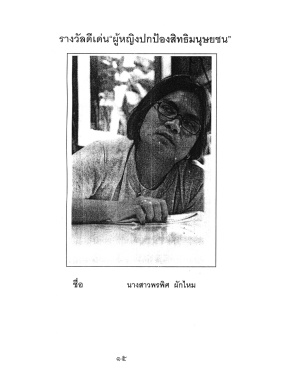 Page 19 - พิธีมอบรางวัลดีเด่น : "ผู้หญิงปกป้องสิทธิมนุษยชน" เนื่องในโอกาสวันสตรีสากล 8 มีนาคม 2548