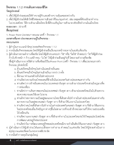 (ซึ่งผูดำเนินการ อาจใชคำถามที่เตรียมไวใน Power Point บทที่ 1 กิจกรรม 1.1 เพื่อประกอบการทำ