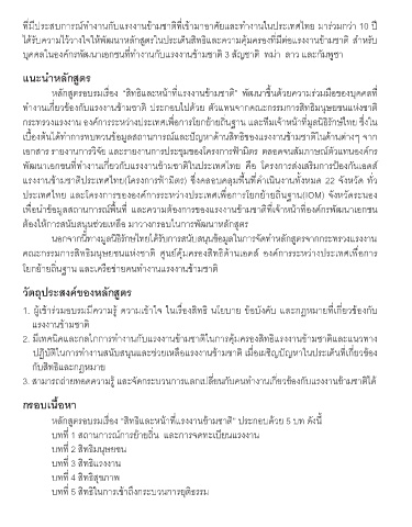 หลักสูตรอบรมเรื่อง “สิทธิและหนาที่แรงงานขามชาติ” ประกอบดวย 5 บท ดังนี้