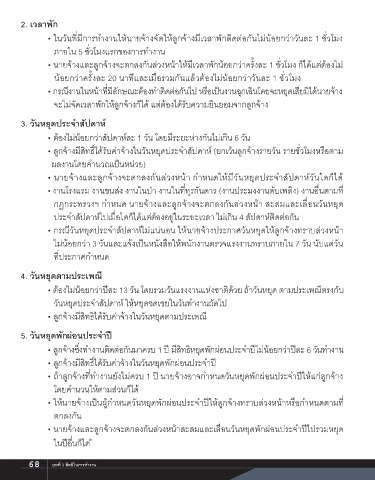 • กรณีวันหยุดประจำสัปดาหไมแนนอน ใหนายจางประกาศวันหยุดใหลูกจางทราบลวงหนา