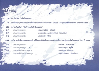 Page 7 - รางวัลเกียรติยศ "ผู้อุทิศตนเพื่อสิทธิมนุษยชน" บุคคลและองค์กรที่มีผลงานดีเด่นด้านการส่งเสริม ปกป้อง และคุ้มครองสิทธิมนุษยชน ประจำปี 2555
