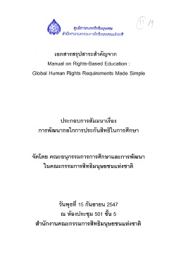 Page 2 - เอกสารสรุปสาระสำคัญจาก Manual on rights-based education : global human rights requirements made simple ประกอบการสัมมนาเรื่อง การพัฒนากลไกการประกันสิทธิในการศึกษา, วันพุธที่ 15 กันยายน 2547 ณ ห้องประชุม 501 ชั้น 5 สำนักงานคณะกรรมการสิทธิมนุษยชนแห่งชาติ