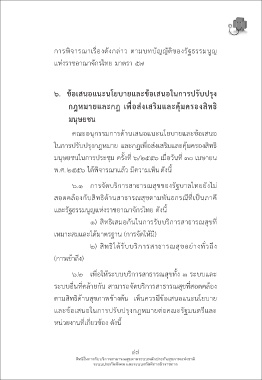 ตามสิทธิด้านสุขภาพข้างต้น เห็นควรมีข้อเสนอแนะนโยบาย