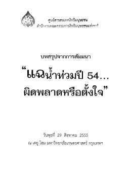 Page 2 - บทสรุปจากการสัมมนา "แฉน้ำท่วมปี 54...ผิดพลาดหรือตั้งใจ" : วันพุธที่ 29 สิงหาคม 2555 ณ เคยู โฮม มหาวิทยาลัยเกษตรศาสตร์ กรุงเทพฯ
