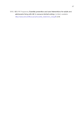87 WHO. AIDS/HIV Programme, Essential prevention and care interventions for adults and adolescents living with HIV in resource-limited settings. [online]. available: http://www.who.int/hiv/pub/plhiv/plhiv_treatment_care.pdf 2008.