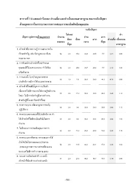 ตารางที่ 7.5 แสดงค่าร้อยละ ค่าเฉลี่ย และค่าเบี่ยงเบนมาตรฐาน ของระดับปัญหา