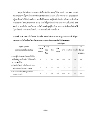 ตารางที่ 7.10 แสดงค่าร้อยละ ค่าเฉลี่ย และค่าเบี่ยงเบนมาตรฐาน ของระดับปัญหา