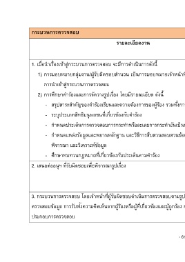 1. เมื่อน าเรื่องเข้าสู่กระบวนการตรวจสอบ จะมีการด าเนินการดังนี้ เจ้าหน้าที่ผู้รับผิดชอบ ก ากับดูแลโดย ผอ.กลุ่ม
