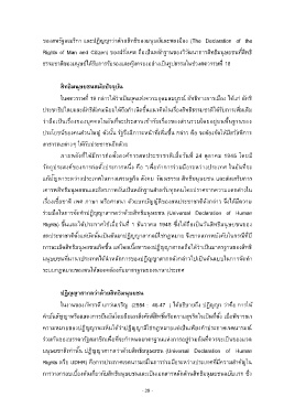 ความหมายของปฏิญญาจะเห็นได้ว่าปฏิญญามิใช่กฎหมายแต่เป็นเพียงค าประกาศเจตนารมณ์