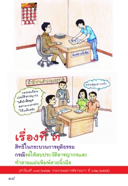 ๑๐ เรื่องเด่น สิทธิมนุษยชนด้านกฎหมายและการปฏิบัติที่ไม่เป็นธรรม เรื่องที่ ๓ สิทธิในกระบวนการยุติธรรม กรณีขอให้ลบประวัติอาชญากรและ ทําลายแผ่นพิมพ์ลายนิ้วมือ (คำ�ร้องที่ ๓๗๙/๒๕๕๒ ร�ยง�นผลก�รพิจ�รณ�ฯ ที่ ๖๕๒/๒๕๕๕) 18