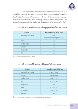 สหรัฐอเมริกา เยเมน เกาหลีเหนือ และโซมาเลีย ดังแสดงในตารางที่ ๓ และตารางที่ ๔ ดังนี้