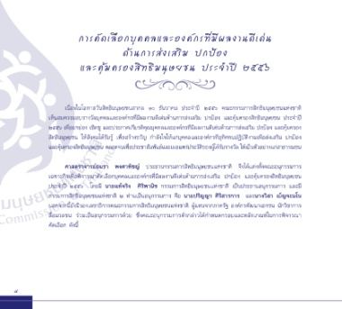 เห็นสมควรมอบรางวัลบุคคลและองค์กรที่มีผลงานดีเด่นด้านการส่งเสริม ปกป้อง และคุ้มครองสิทธิมนุษยชน ประจำาปี