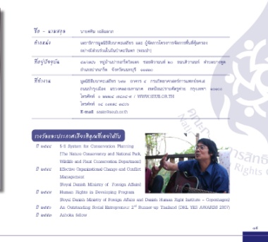 ตําแหน่ง เลขาธิการมูลนิธิสืบนาคะเสถียร และ ผู้จัดการโครงการจัดการพื้นที่คุ้มครอง