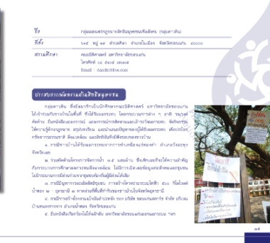 ที่ตั้ง ๖๑๕ หมู่ ๑๙ ตำาบลศิลา อำาเภอในเมือง จังหวัดขอนแก่น ๔๐๐๐๐