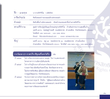 Page 59 - รางวัลเกียรติยศ "ผู้อุทิศตนเพื่อสิทธิมนุษยชน" บุคคลและองค์กรที่มีผลงานด้านการส่งเสริม ปกป้อง และคุ้มครองสิทธิมนุษยชนดีเด่น ปี 2556