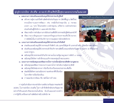 • สนับสนุนและพัฒนากระบวนการและกลไกการดำาเนินงานคุ้มครองสิทธิ