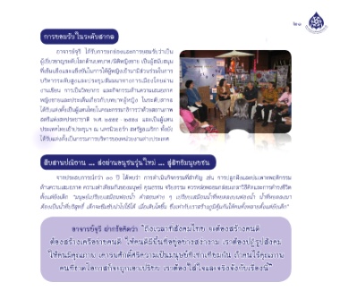จากประสบการณ์กว่า ๓๐ ปี ได้พบว่า การดำาเนินกิจกรรมที่สำาคัญ เช่น การปลูกฝังและบ่มเพาะพฤติกรรม