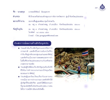 ตํำาแหน่ง ที่ปรึกษาเครือข่ายองค์กรชุมชนการจัดการทรัพยากร ลุ่มน้ำาจังหวัดแม่ฮ่องสอน