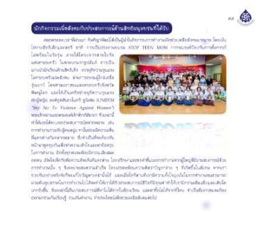 ไปทางสิทธิเด็กและสตรี อาทิ การเป็นประธานชมรม STOP TEEN MOM การรณรงค์ป้องกันการตั้งครรภ์