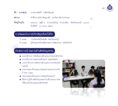 • ประธานสภาเด็กและเยาวชนจังหวัดนนทบุรี