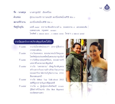 ตํำาแหน่ง ผู้ช่วยบรรณาธิการข่าวสามมิติ สถานีโทรทัศน์ไทยทีวีสี ช่อง ๓