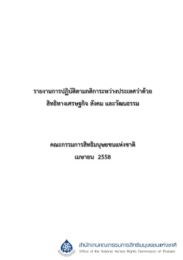 รายงานการปฏิบัติตามกติการะหว่างประเทศว่าด้วย สิทธิทางเศรษฐกิจ สังคม และวัฒนธรรม คณะกรรมการสิทธิมนุษยชนแห่งชาติ เมษายน 2558