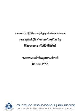 รายงานการปฏิบัติตามอนุสัญญาต่อต้านการทรมาน และการประติบัติ หรือการลงโทษที่โหดร้าย ไร้มนุษยธรรม หรือที่ย่่ายีศักดิ์ศรี คณะกรรมการสิทธิมนุษยชนแห่งชาติ เมษายน 2557