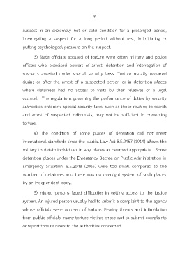 suspects arrested under special security laws. Torture usually occurred