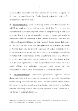 29. Recommendation: Given the findings of the above torture cases, the